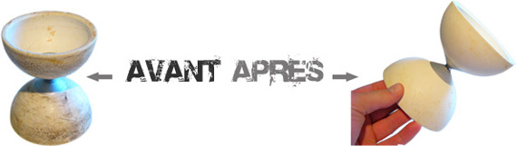 La partie qui deviens vite sale sur un diabolo c'est finalement ses coques. Il faut donc pour commencer démonter celles-ci.