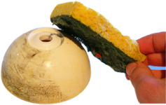 Certains optent pour la brosse à dent qui permet de passer vraiment partout... Ici nous avons utilisé une éponge...